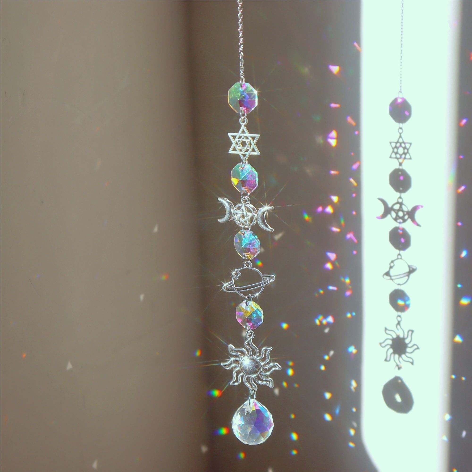 1pc; Colorful Crystals Suncatcher Hanging Sun Catcher With Chain Pendant Ornament Crystal Balls For Window Home Garden Christmas Day Party Wedding Decoration