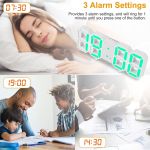 *Large Display & 3 Alarm Settings*:With 8.86x3.15 inches large 3D LED display; easy to read at night; which especially suitable for child and seniors. The alarm clock provides 3 alarm settings; and will ring for 1 minute until you press one of the button.