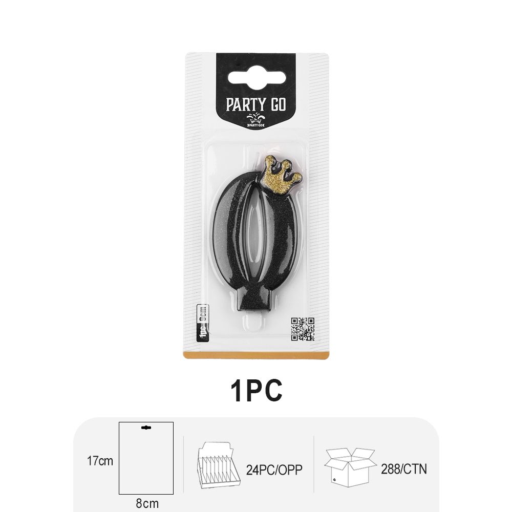 Birthday Number 0 Candles,Black Crown Birthday Candles for Cake,Glitter Sequins Number Candle Cake Topper Sequins for Anniversary Supplies Birthday Party Wedding Decoration 8.7cm 24pcs