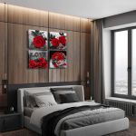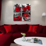 3.★Size:12x12inchx4pcs(30x30cmx4pcs). Red flowers prints on canvas. Packing in carton box.