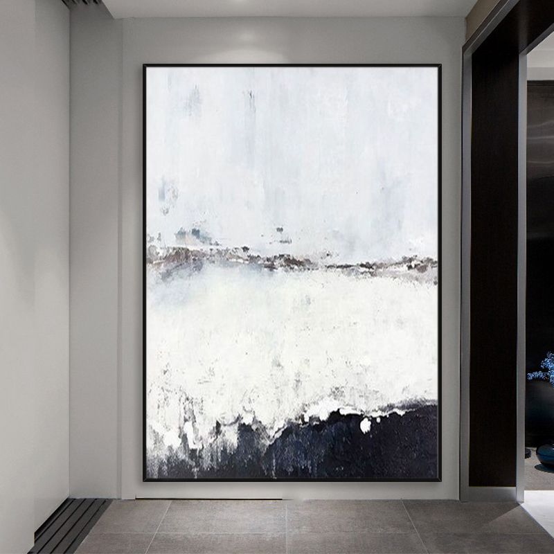Handmade Gold Foil Abstract Oil Painting Wall Art Modern Minimalist Black and White Picture Canvas Home Decorative For Living Room No Frame