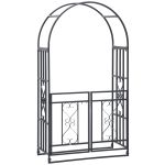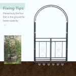 OUTDOOR READY METAL ARBOR: This garden arch with gate was made with outdoor in mind featuring strong steel tubes that are weather treated with epoxy to seal them against water damage. The bottom of the frame is fashioned to help the arch withstand wind and whatever the weather may its way.